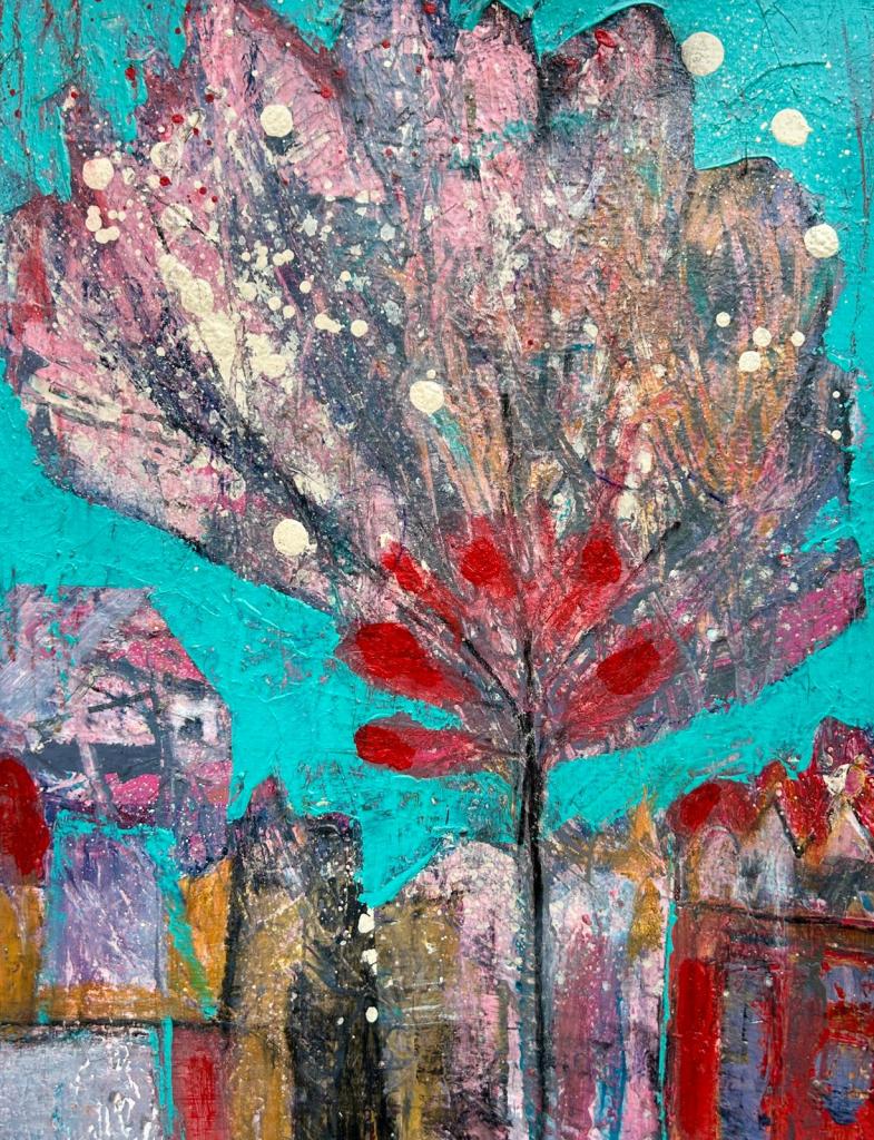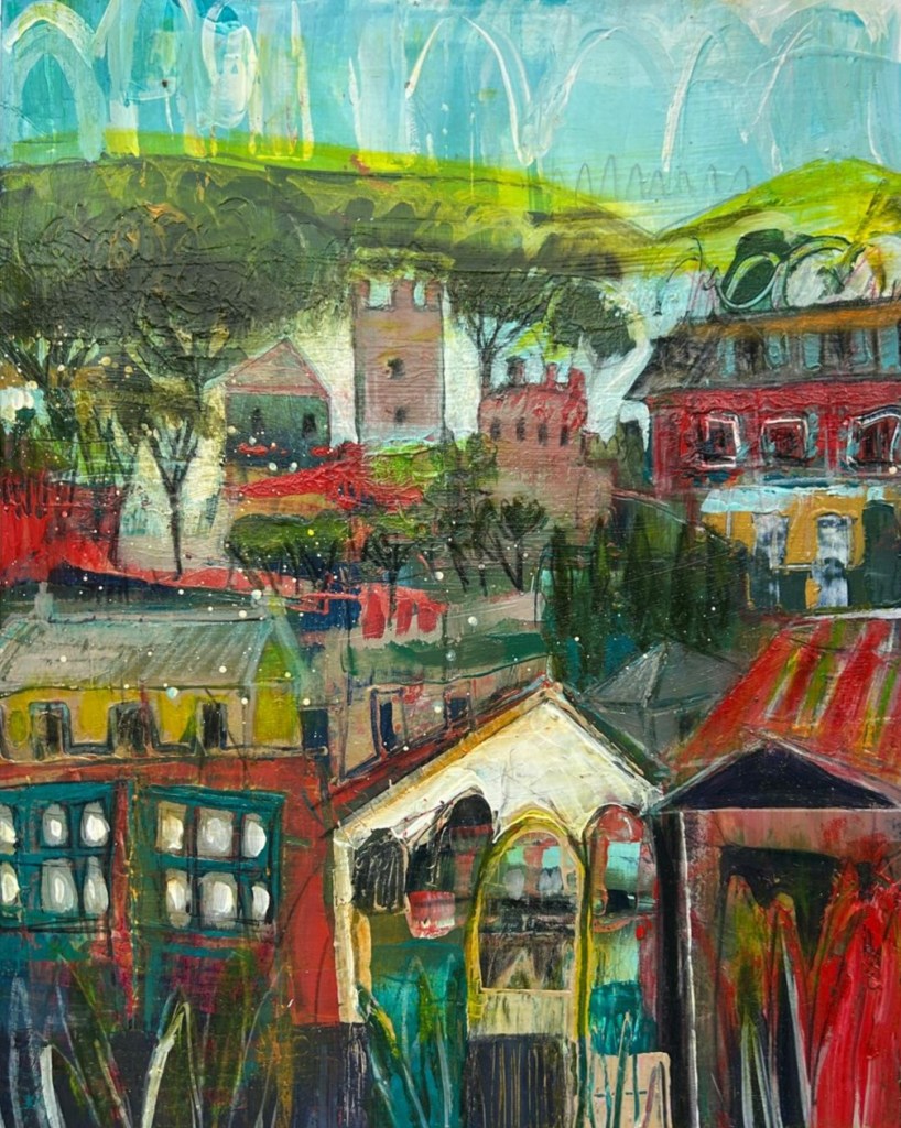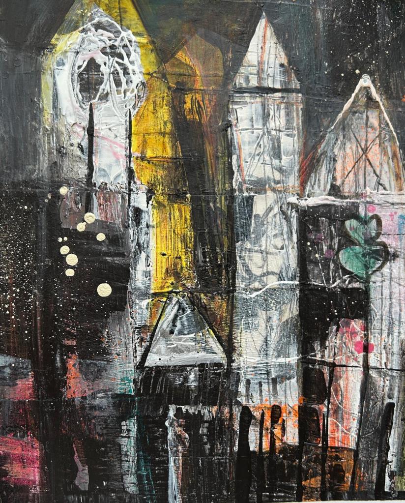 This collection explores the geometry and rhythm of rooftops and houses, where shapes and angles intertwine, overlap, and float. Forms capture the essence of dwellings, as memories, impressions, and fragments of space. Here, the familiar becomes unfamiliar, inviting the viewer to wander through a landscape of forms, lines, and colours.