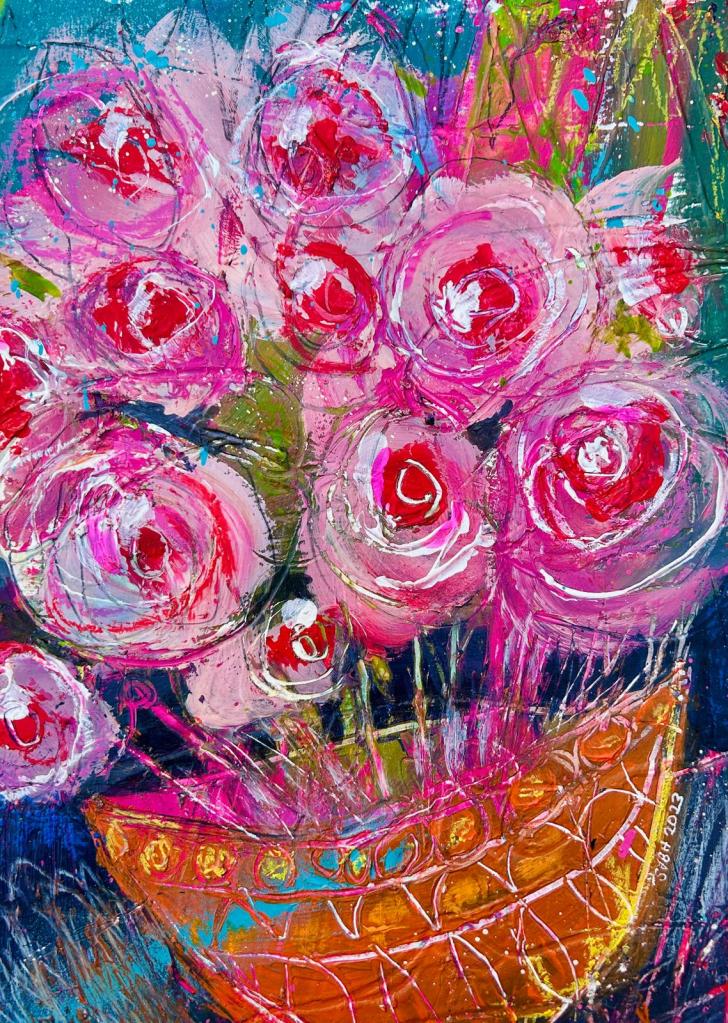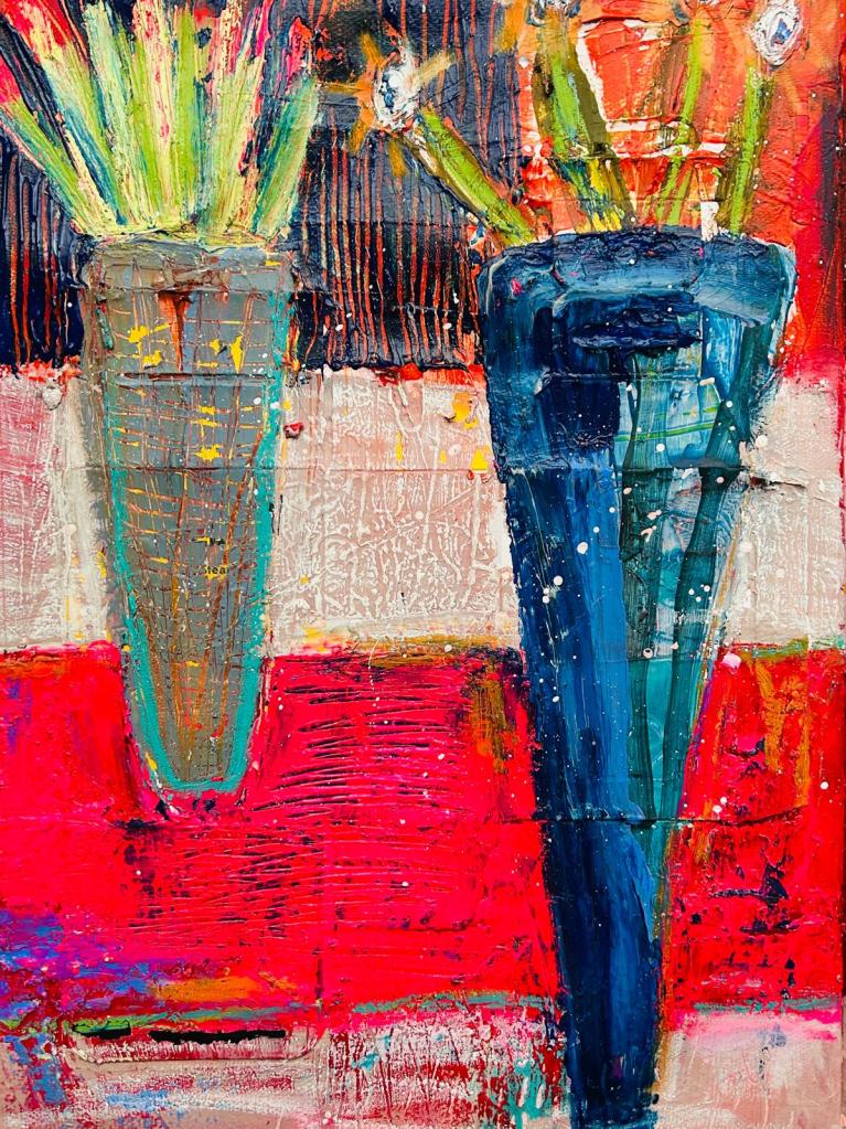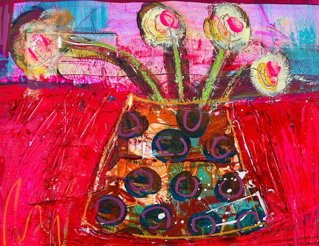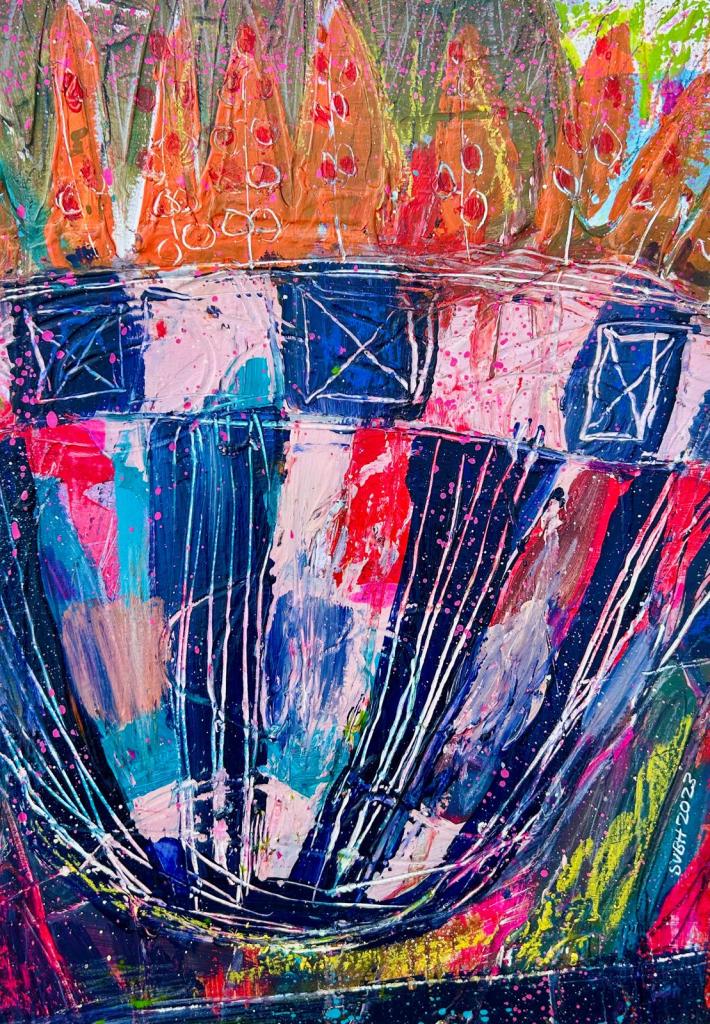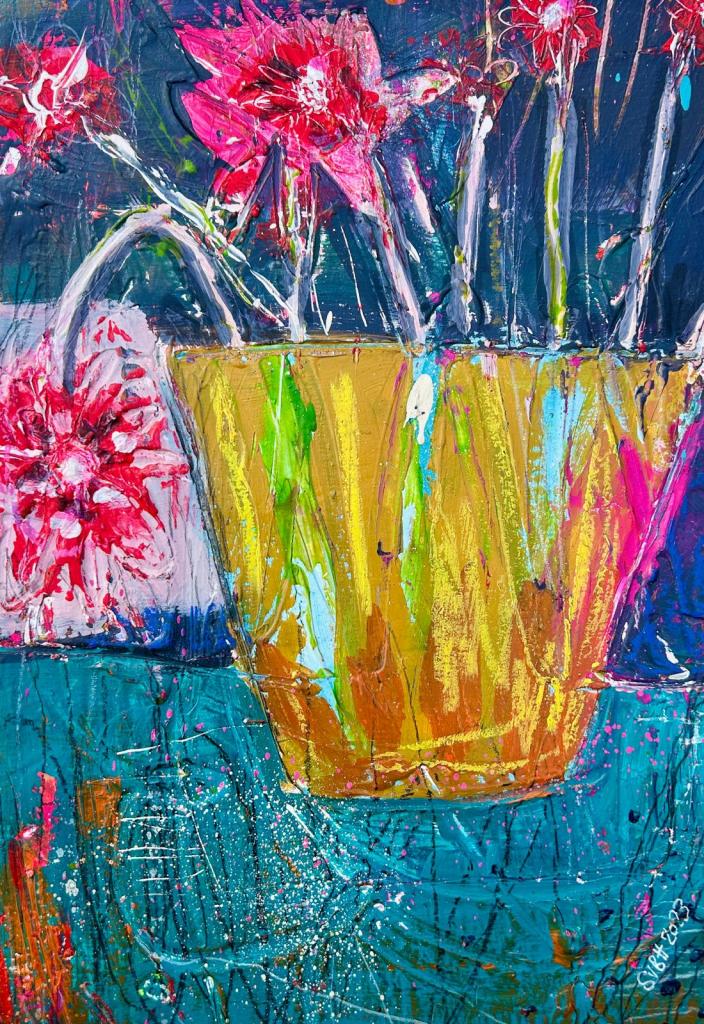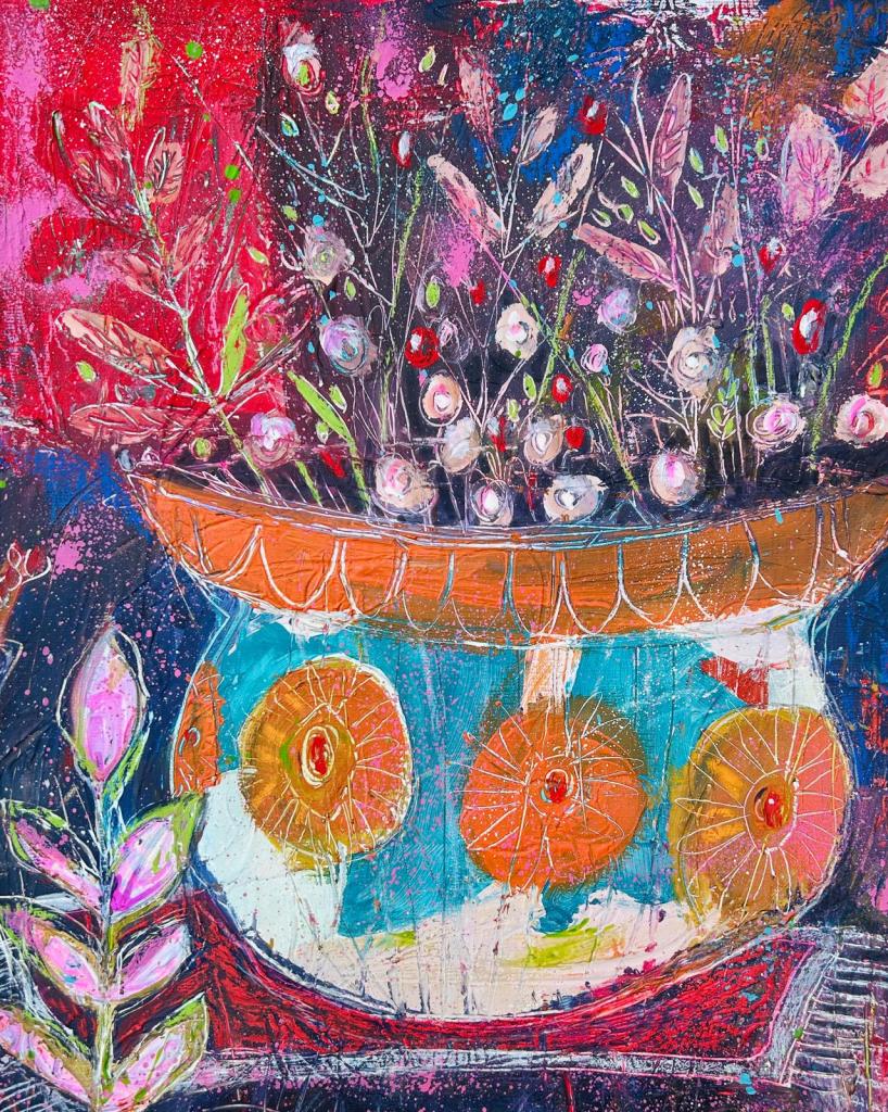 Vases and Bowls brings the intimate scale of still life into a vibrant, contemporary voice. Everyday vessels overflow with colour and gesture, turning ordinary arrangements into celebrations of abundance, playfulness, and emotional resonance.